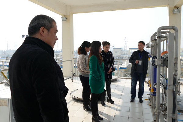 隨后,各位領導在宿遷公司副總經理陳少軍的陪同下,參觀了宿遷公司二水廠各項制水生產工藝。在參觀過程中,制水部副經理胡振軍向各位領導詳細介紹了“深度處理”工藝。宿遷公司于2014年底正式使用“深度處理”工藝,“深度處理”能力占總處理能力60%以上,遠超江蘇省33%的平均水平,使得我市供水水質與發達國家接軌,從“安全水”跨入“優質水”時代。