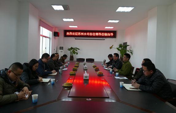 3月10日,蘇州市自來水有限公司總工程師董堅、蘇水市政設計有限公司總經理虞正平等一行6人赴聯合水務宿遷銀控自來水有限公司就供水設施建設、運行管理及寒潮供水設施防凍保溫等工作進行交流。宿遷公司副總經理尹邦交、工程總經理梁丹、調度中心主任趙軍等熱情接待董總等一行。
