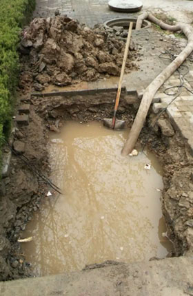 4月4日管網部探漏員袁剛沿線人民大道對該片區管網進行探漏工作,夜晚23時左右,在清華中學附近水表組處聽到微弱水聲。探漏員沿著管線,仔仔細細向前查找,經過反復探查在廈門路一處下水管道處發現流水異常。隨后,順著下水管道一路追蹤,在人民路教堂前污水井內發現水流急促,“夜行人”打開井蓋發現水流來自路東人行道,經過4小時細致探查,反復確認,最后在117號路燈北3.2米處查到漏點。