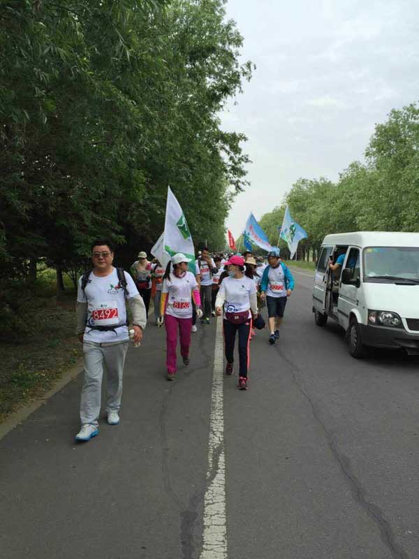 7:00整我跟著浩浩蕩蕩的徒步隊(duì)伍準(zhǔn)時(shí)出發(fā)了。因?yàn)槠饺绽镂揖蛺?ài)好徒步,對(duì)此次的環(huán)湖,我還不是很有信心,相信應(yīng)該能順利到達(dá)終點(diǎn)。與我并行的還有我的一個(gè)好友,一個(gè)同學(xué)。第一個(gè)簽到點(diǎn)我們輕松就到了,下一個(gè)目標(biāo)就是30公里的簽到點(diǎn)。本來(lái)出發(fā)時(shí)整齊有序的隊(duì)伍,現(xiàn)在顯得有點(diǎn)零散了,每個(gè)人的體力不一樣,因此無(wú)形中拉開(kāi)了距離。30公里簽到后,已經(jīng)有部分“驢友”坐上保障車(chē)了,看來(lái)他們已經(jīng)與獎(jiǎng)牌無(wú)緣了。45公里、55公里一一拿下后,我絲毫沒(méi)有累的感覺(jué),這應(yīng)該與我平時(shí)經(jīng)常鍛煉有關(guān)吧!身邊的朋友已經(jīng)累得不行了,但是他依然堅(jiān)持,哪怕是腳上磨了幾個(gè)水泡。雖然他的體力不如我,但是他的堅(jiān)韌不拔,敢于吃苦的精神讓我敬佩著。隨后,我們到達(dá)了窯灣,停頓修整就餐后入住下來(lái)。