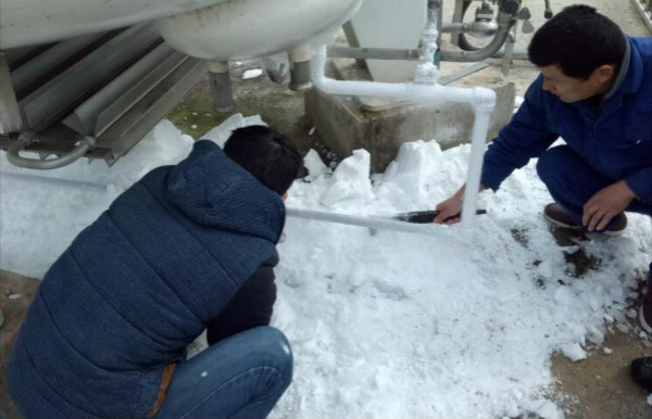 (圖1:工作人員正在清理輸送管路上的冰霜)