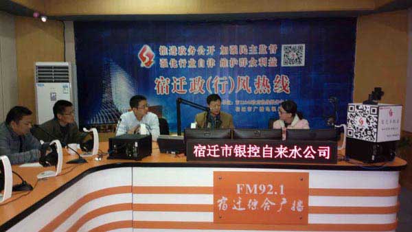 宿遷“政(行)風(fēng)熱線”是由宿遷市政府“12345”熱線服務(wù)中心與宿遷市廣播電視總臺(tái)聯(lián)合打造的維權(quán)服務(wù)類(lèi)節(jié)目,是宿遷地區(qū)頗具權(quán)威的投訴受理平臺(tái),具有非常大的社會(huì)影響力。根據(jù)安排,12月9日,宿遷銀控自來(lái)水有限公司副總經(jīng)理陳少軍、尹邦交,工程公司總經(jīng)理梁丹,水質(zhì)檢測(cè)公司經(jīng)理葉慎忠組成嘉賓團(tuán)走進(jìn)市“政(行)風(fēng)熱線”節(jié)目直播室,就供水方面的熱點(diǎn)、焦點(diǎn)問(wèn)題與廣大用戶(hù)一道,共同交流與探討。