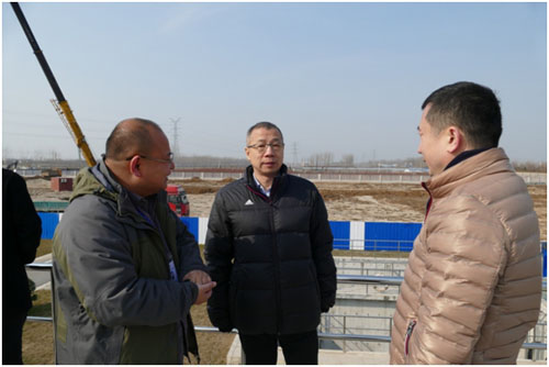 最后,俞總等領導驅車趕往“河湖連通”工程現場,視察工程進展情況。“河湖聯通”工程目前已進入施工階段,板澆筑工作已全面完成,吸水井池地建設也已完成1/3的工程量,年后將加快工程進度,預計今年6月份完成。
