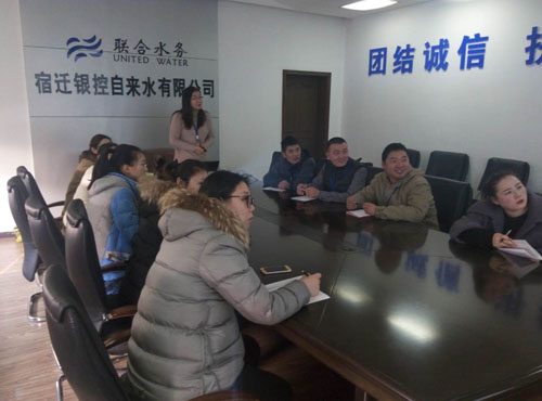 培訓會上,郁莉著重介紹了公司的發展歷史及企業文化,將公司從改制前后供水能力、范圍和提高水質、服務等工作所取得成績娓娓道來。從制水工藝到水質檢測,從管網維護到窗口服務,從工作態度到做人道理,郁莉通過真實故事向新員工展現了“銀控人”在宿遷供水事業上所付出的辛勤與汗水。同時也通過工作中的一些案例,向新員工介紹了實用的工作方法與技巧,如面對工作中遇到的困難和問題,如何及時調整心態,學會總結,摒棄抱怨。最后,郁莉和大家分享了如何提高自身執行力的經驗,以及介紹執行力在日常工作中的重要性。