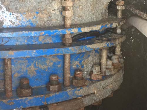 為確保維修人員在井室內(nèi)正常操作,需將伸縮器管道內(nèi)現(xiàn)有水排空。請(qǐng)教管網(wǎng)部經(jīng)理后,大家共同確定了維修方案,并及時(shí)聯(lián)系生產(chǎn)廠家。3月12日,完成了墊片的更換工作,我們向廠家維修人員詢問墊片滑脫的原因,維修人員告訴我們出現(xiàn)這樣的情況應(yīng)該是安裝時(shí)伸縮器的限位螺絲未擰到位導(dǎo)致。