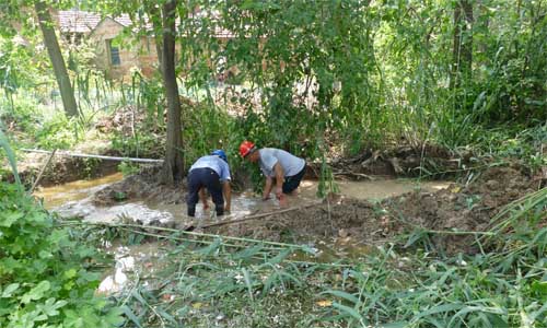 8月19日,一場(chǎng)突如其來(lái)的大暴雨破壞了區(qū)域供水龍河片區(qū)羅圩鄉(xiāng)多處通往村里的110供水主管道。“險(xiǎn)情就是命令”,冒著大雨查找漏點(diǎn),確認(rèn)無(wú)誤后,立即展開(kāi)搶修。在羅圩村,搶修從瓢潑大雨進(jìn)行到雨后驕陽(yáng)似火,由于漏點(diǎn)所在處是一個(gè)大池塘旁邊的樹(shù)林,滿是酒瓶等生活垃圾,樹(shù)林里無(wú)法使用機(jī)械作業(yè),只能靠人工一鍬一鍬開(kāi)挖,加之池塘被村民挖開(kāi)一個(gè)大缺口泄洪,挖開(kāi)的漏點(diǎn)區(qū)馬上被水灌滿。維修人員雨靴被劃開(kāi)了大口子,干脆脫下來(lái)赤腳上陣,全然不顧被扎傷腳的危險(xiǎn),腳底不停打滑,跌倒了從泥水中爬起來(lái)繼續(xù)干,心中想著的只有老百姓對(duì)恢復(fù)供水的急切期盼。