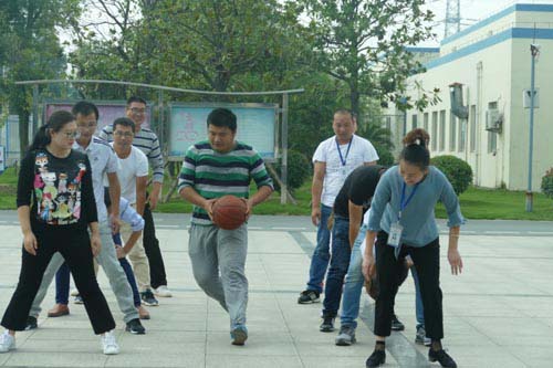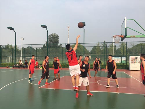 928日下午,舉行籃球比賽。連續(xù)一周的陰雨天氣后,中午時分終于撥云見日。公司員工分為紅—黑兩隊,簡單的熱身后,一聲哨響,籃球比賽正式開始。身著紅色隊服的隊員開局出彩,隊員之間配合默契,屢屢殺進對方內(nèi)線投籃得分,一路領(lǐng)先。黑隊緊急調(diào)整戰(zhàn)略,嚴(yán)防死守,步步緊逼,抓住一個3分空位投籃的機會果斷投籃,籃球應(yīng)聲入網(wǎng),也為黑隊隊員增長了氣勢,隨后連連得分。至中場結(jié)束時,紅隊以16:14微弱的優(yōu)勢領(lǐng)先。稍作休息后,雙方交換場地,比賽繼續(xù)開始。第三節(jié)比賽中,雙方隊員都達到最佳狀態(tài),你追我趕,比分不相上下,直至第四節(jié)比賽最后20秒,黑隊僅領(lǐng)先紅隊2分,也給比賽結(jié)果造成懸念。至最后讀秒階段,紅隊伴隨著兩罰不進,黑隊最終以32:30的成績險勝紅隊。