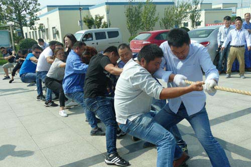 陣陣歡呼聲中,迎來最為激動人心的比賽項目——“拔河”。作為每次活動保留的傳統(tǒng)項目,“拔河”比賽最能展現(xiàn)團隊凝聚力與實力。今年與往年不同的是,增加了每組女隊員的人數(shù),每組15人(105女),共有6組參賽隊伍。比賽采取淘汰賽和循環(huán)賽制,經(jīng)過第一輪初賽,生產(chǎn)技術(shù)聯(lián)隊、工程公司聯(lián)隊、行政辦公聯(lián)隊勝出,而區(qū)域供水聯(lián)隊、污水隊、客服隊?wèi)K遭淘汰。接下來,強強對決,現(xiàn)場更加激烈,助威吶喊聲響徹整個廠區(qū)。最終,生產(chǎn)技術(shù)聯(lián)隊和工程公司聯(lián)隊以較大的優(yōu)勢進入最終的巔峰對決。作為最有實力的老大哥,生產(chǎn)技術(shù)聯(lián)隊多年來“拔河”冠軍的頭銜無人撼動,但工程公司聯(lián)隊也毫不示弱,氣勢洶洶,志在必得。兩隊實力相當(dāng),場面相當(dāng)激烈。伴隨著最后一局?jǐn)?shù)十秒的僵持,最終工程公司聯(lián)隊以2:1的成績戰(zhàn)勝生產(chǎn)技術(shù)聯(lián)隊獲得最終的勝利。
