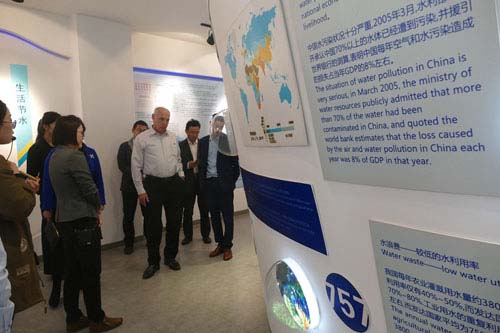 考察團一行首先來到位于第二水廠的宿遷市水文化展示館參觀,在“論水、制水、節水”展區,逐一認真觀看并仔細聆聽翻譯的講解。特別是在節水展區,總領事普若璞先生說,以色列也是一個水資源緊缺的國家,對宿遷銀控自來水有限公司大力宣傳、提高人們節水意識的做法表示贊賞。曾真總經理表示,以色列具有世界先進的節水工藝技術,值得學習。