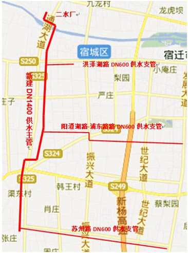 隨著宿遷經濟的飛速發展,宿遷中心城區和各工業園區需水量不斷增加,加之城鄉區域供水一體化進程的加速,供水人口及供水范圍增加迅速。為提高供水能力和保障供水安全,2015年底,公司領導經過分析論證,向集團總部提出了投資建設沿通湖大道(二水廠-蘇州路)總長7.9公里的DN1400mm給水主管道及配套建設沿洪澤湖路、陽澄湖路和浦東路、蘇州路三條共計10.2公里DN600支管道的重大投資計劃。集團總部領導果斷決策,批準立即啟動該工程,并給予了4800萬的預算,全力支持宿遷的供水事業。