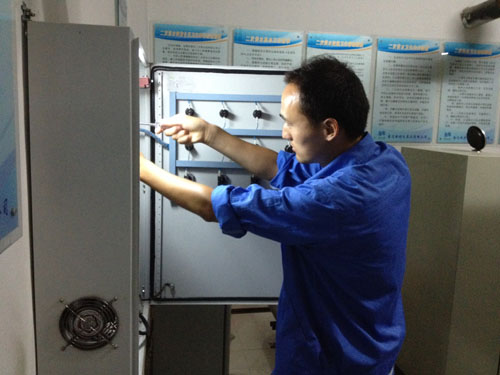 挑戰(zhàn)高溫酷暑的機電設(shè)備維護人員,確保每一臺機器設(shè)備的安全運轉(zhuǎn)。每年的高峰供水來臨前,宿遷銀控自來水有限公司都會制定詳實的電氣設(shè)備和機組設(shè)備的保養(yǎng)、維護、改造計劃,確保各項設(shè)備運行狀況良好,同時要求,在高峰供水期間,每日要對機組進行加密巡檢,特別是對易產(chǎn)生高溫運轉(zhuǎn)的設(shè)備如電器設(shè)備進行專項養(yǎng)護。這可忙壞了機電設(shè)備人員。在熱氣蒸騰的狹小機柜內(nèi)、在機器轟鳴震耳欲聾、密不透風(fēng)的機組運行間、在充滿窒息氣味的脫泥機間……在裝有設(shè)備的每一個角落,他們?nèi)淌苤鴲灍帷⒋瘫堑慕刮墩J真工作著。維修人員介紹說,每周要進行至少30余項電路養(yǎng)護、巡檢,平均每天都要在這樣的環(huán)境下工作數(shù)小時。他們說,機組的安全運行保障了制水的安全生產(chǎn),擔(dān)負著為全城百姓供水服務(wù)的責(zé)任,雖苦猶榮。