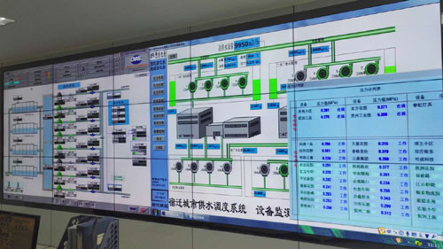 隨著科技的不斷發展,供水設備也在不斷升級,由于原有的供水管網屏已經不能滿足現有需求,所以公司投入四十萬,更換成了液晶數字大屏,瞬間感覺“高大上”啦。它能把調度中心的所有資源整合在一起,包括工藝生產控制,管網信息,二次供水,視頻監控信息等等。