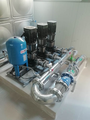 由于學校泵房空間狹小加上要在學校范圍內施工,學生比較多,安全要求更高,我司施工人員克服各種困難,在施工現場嚴格按照有關施工技術規范規定和設計圖紙要求進行了精心組織、嚴格管理。在確保安全、質量的前提下,在寒潮來臨之前順利完工,徹底解決了學生的用水問題。