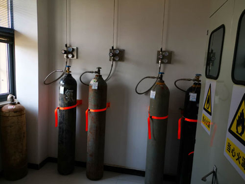 所有鋼瓶集中存放。分為:空瓶區、在用區和備用區。儲存鋼瓶的倉庫內應備有消防用具,并采用防爆的照明。
