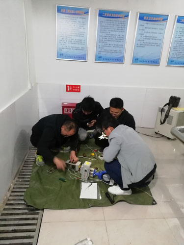 第一個知識點是給大家講解電動閥的電路圖,他具體說明了電動閥的六根接線柱的作用所在,然后利用一只浮球閥開關,接出一套最簡單的電動閥控制線路,并且結合泵房內部自控柜和電動閥接線進行對比講解。特別強調了部分電路的拆檢工作,必須在斷開電源的情況下才可以進行。緊接著是對電動頭的拆裝培訓,王工指導參訓人員動手拆解,先打開電動頭端蓋,看到的是并行兩排的四只微動開關和一只電容,上面的兩只微動開關是電機電源的正、倒轉開關,下面兩只微動開關是閥門關閉和打開的信號開關。王工一邊指導拆解,一邊講述各個配件的作用原理。拆下微動開關和電容,再打開一層壓蓋,就看到了電機和傳動齒輪,王工講解說電機本身的扭矩是不大的,之所以能夠驅動閥門轉動,就是靠齒輪對力矩的轉換才達到目的的。當把電動頭的所有元件都拆除后,然后再進行安裝恢復。通過近三個小時的實操培訓,所有參訓人員均對電動閥有了更深一步的認識和理解。
