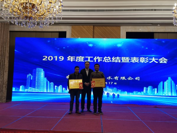 回首過去,砥礪奮進創佳績;展望未來,戮力同心鑄輝煌。2020年1月17日下午,聯合水務集團宿遷公司,在宿遷恒力國際大酒店隆重召開2019年度工作總結暨表彰大會,全面總結回顧過去一年取得的成績和經驗,安排部署2020年工作計劃。聯合水務集團高級副總裁劉猛先生、總裁助理兼財務部總經理陳國清先生、運營管理中心總經理王歡先生、采購總監曹雷先生、人力資源招聘與培訓經理黃晨先生親臨大會現場,宿遷公司主管以上管理人員、先進員工及員工代表共計98人參加了會議。宿遷銀控自來水有限公司人力資源行政副總經理陳少軍主持會議。