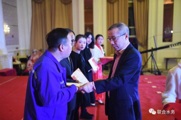 聯合水務集團高級副總裁劉猛先生為新春聯歡會獲獎節目頒獎