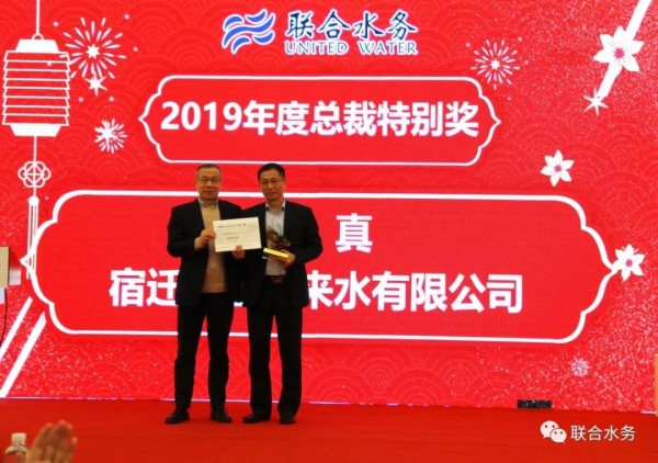 1月20日,聯合水務集團2020年年會在咸寧碧桂園鳳凰溫泉國際酒店召開,上海集團總部、各區域項目公司的帶頭人共計48名高層管理人員參加會議,總結2019、展望2020年,共商集團發展大計。會議由集團人力資源行政總經理楊麗霞女士主持。各項目公司、集團各運營模塊負責人分別作了2019年工作總結和新一年工作計劃匯報,集團高級副總裁劉猛先生、陳樵先生、副總裁羅斌先生根據匯報對各自負責的華中區、華南區、北方區的重點工作和挑戰做了分析與計劃,向著更高的目標,不斷奮進!2019年,宿遷銀控自來水有限公司為集團營收、人才輸出、新項目建設等做出了突出貢獻,總經理曾真先生摘得“2019年聯合水務集團總裁特別獎”桂冠。集團董事長兼總裁俞偉景先生為曾總頒獎。榮譽是激勵,更是鞭策。曾真總經理發表獲獎感言,感謝集團領導對宿遷公司的關懷、感謝宿遷公司所有同仁的共同努力、感謝各兄弟公司的鼎力支持,并表示將一如既往,緊跟集團發展步伐,當好排頭兵。